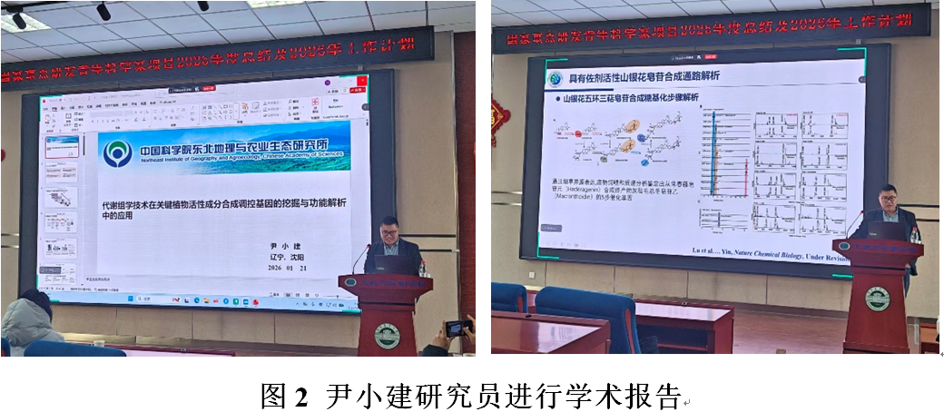 1月21日上午,尹小建研究员在会上作了题为《代谢组学技术在关键植物活性成分合成调控基因的挖掘与功能解析中的应用》的专题报告,报告系统介绍了代谢组学的基础理论与技术方法,重点阐述了代谢组学与转录组、基因组等多组学技术联用,在解析植物生理代谢过程与基因功能中的重要作用。该报告为项目组深入理解并应用组学方法研究黑土地有机质积累机制提供了有力的方法论支持。